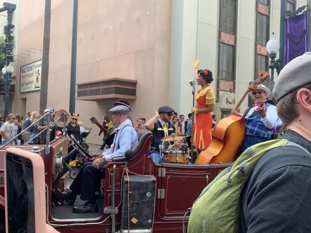 沿路走会有游行的复古乐队路过,主唱是迪士尼公主,伴着乐队的live演奏,无论你在路上什么时候和他们打招呼,他们都会报以诚挚的微笑。